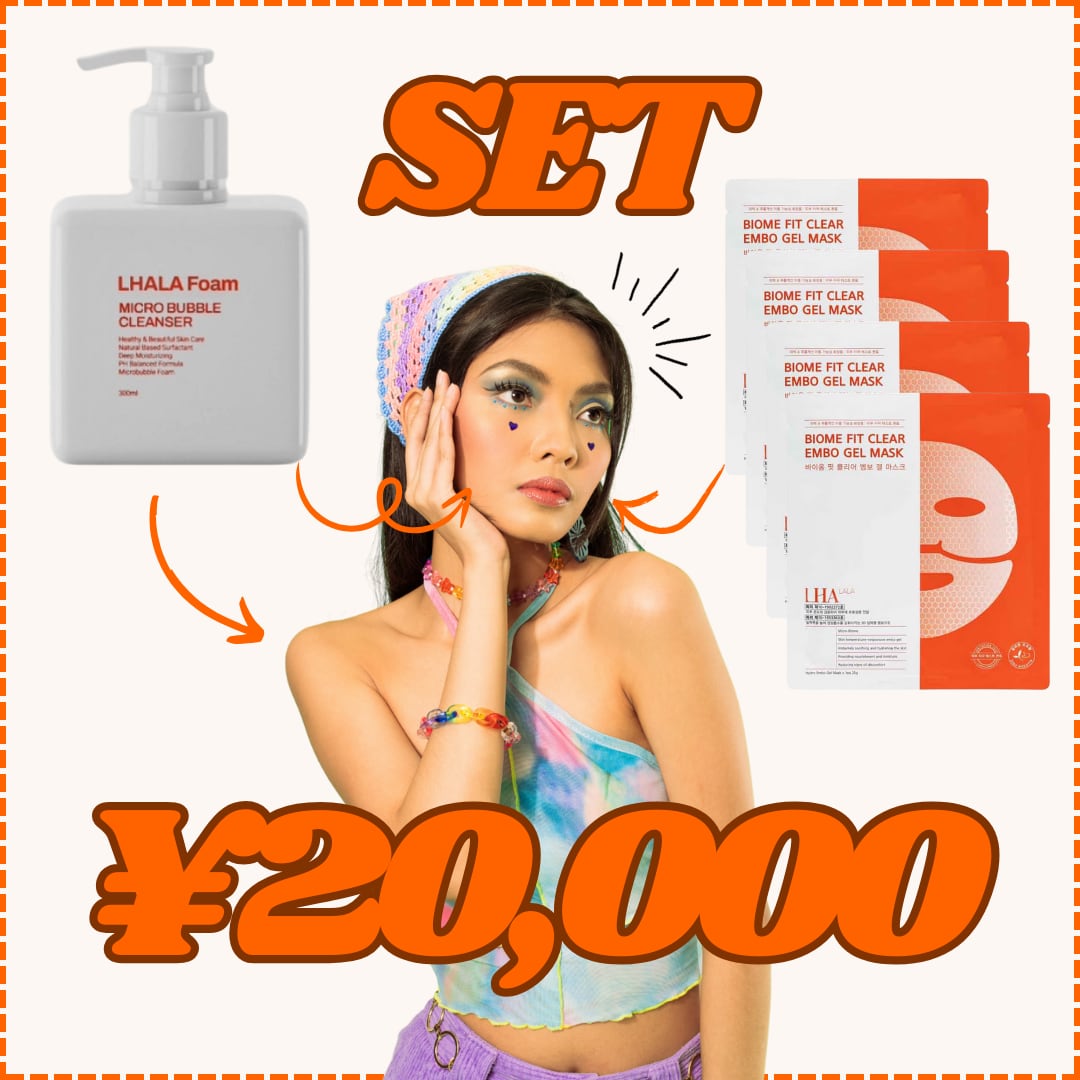 ★【Aセット】2点セット/ララピール マイクロバブルクレンザー(約100名分)1本/バイオムフィットクリアゲルマスク(4枚入り)✖1 (送料無料)総額24,200円が4,200円引き!