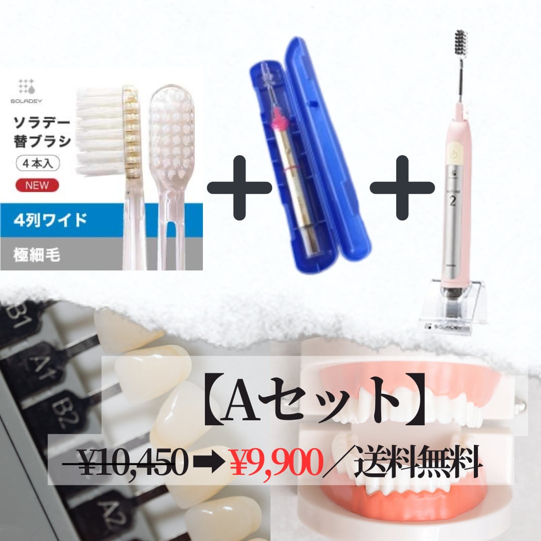 3/15(日)【Aセット】ソラデー替ブラシ 4列ワイド 極細毛/ソラデーリズムII (3色あり選べる)/ソラデー 歯ブラシ携帯ケース(青)リズム用